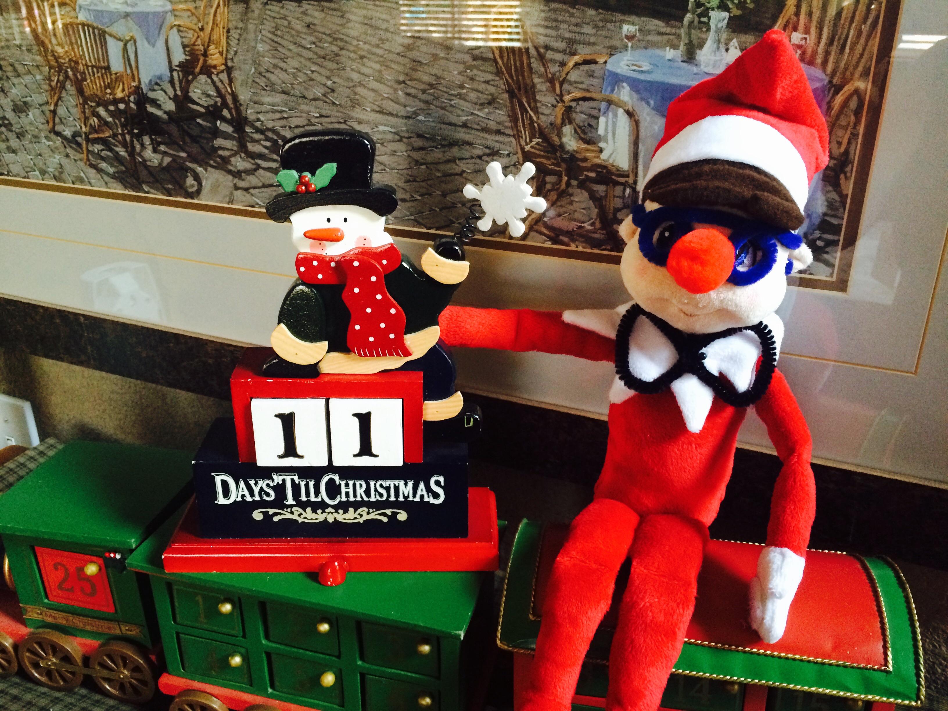 This of course is only limited by my imagination , and whether or not I even remember to change his location. I usually have my shower and am settling down in bed when my last waking thought is the Elf. I jolt upright, stumble down the stairs ,and scramble my brain to think of a new place to stage him.