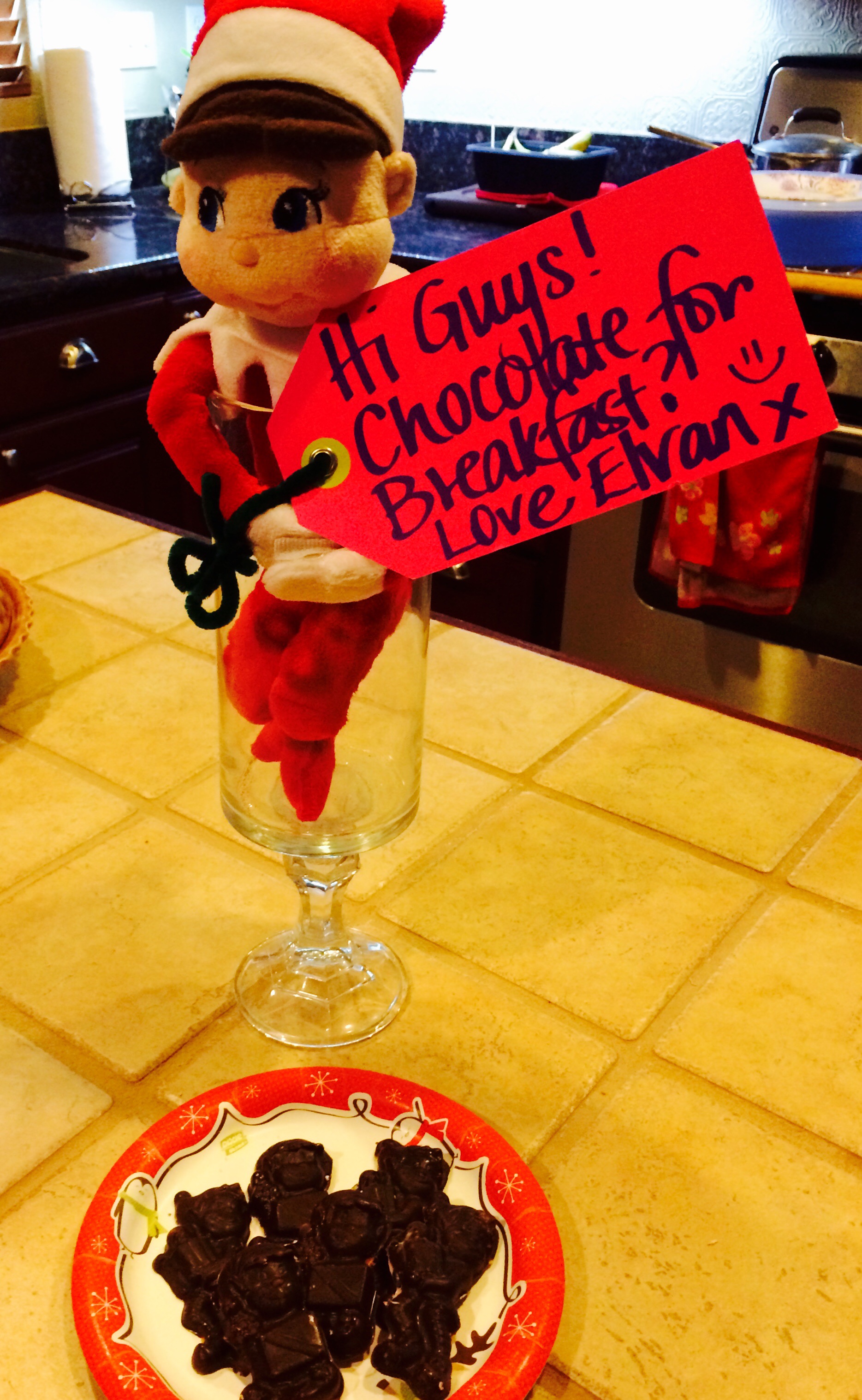 Cookies, fudge, gingerbread, cooler temperatures ( not cold, it’s Southern California) , hot chocolate, late night gift shopping online but most of all….our elf, Elvan , appears!!!