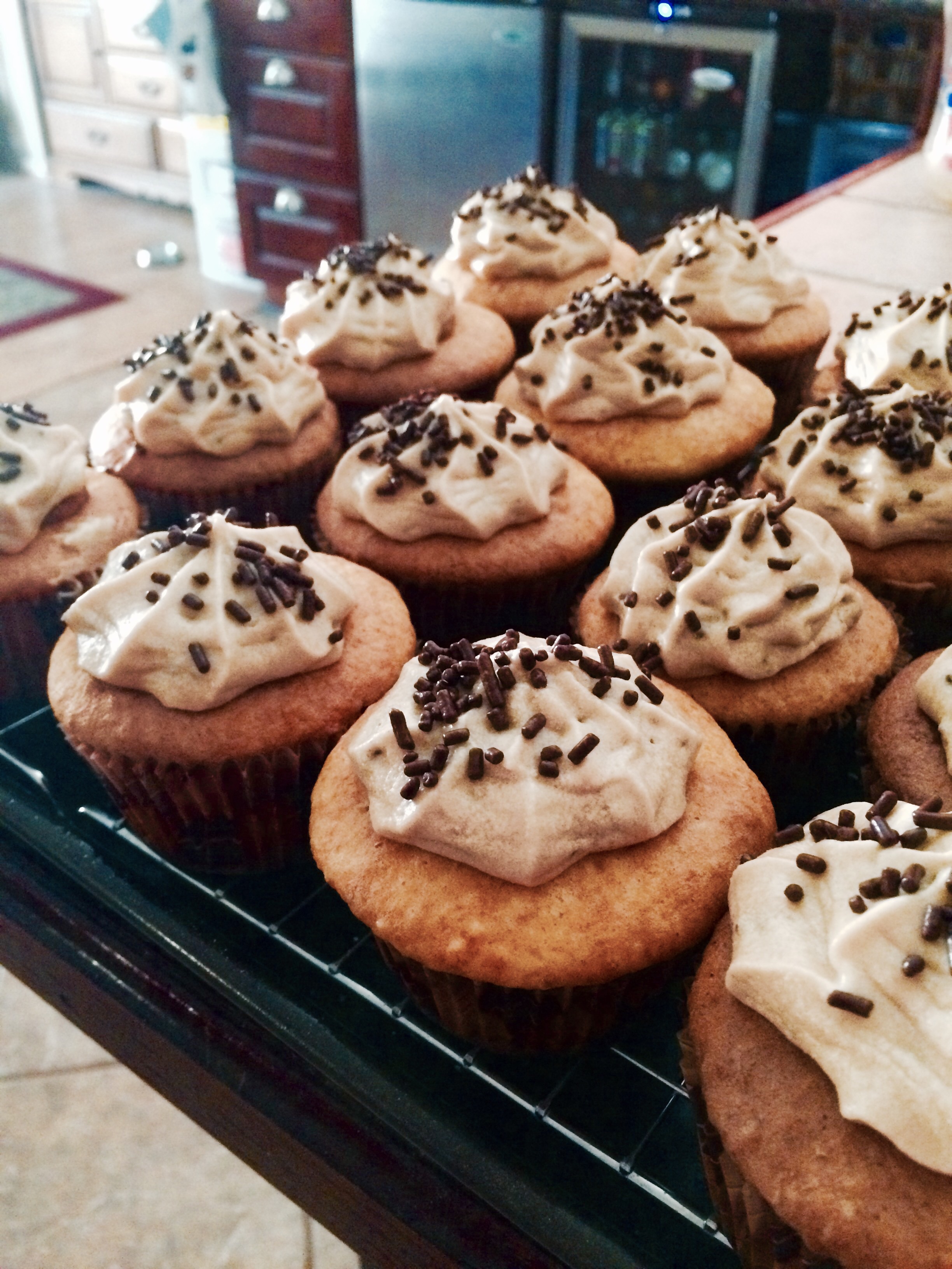 Made a brown butter buttercream ( sorry no recipe amounts) but powdered sugar, brown sugar , tablespoon milk, stick of butter and a dash of vanilla. Mix until thick.
