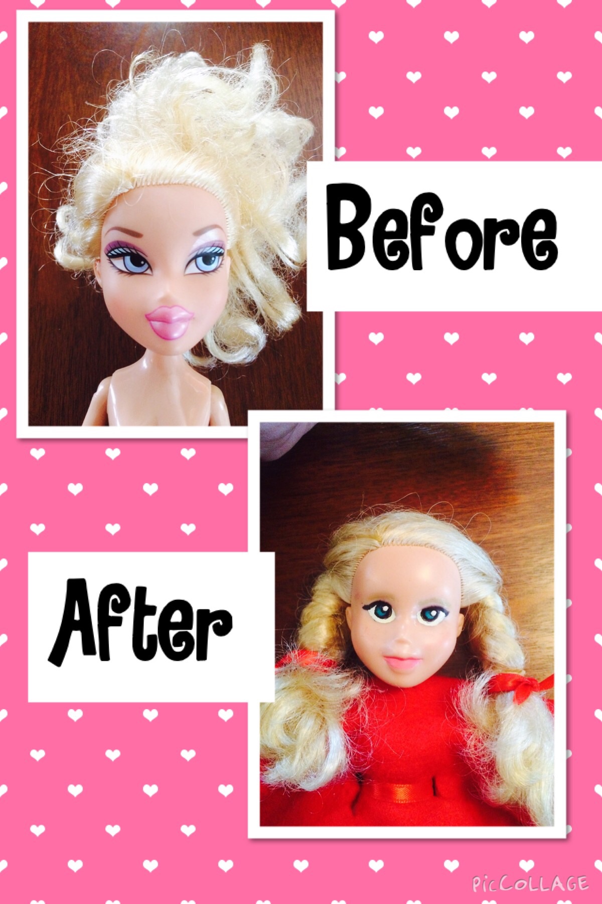As an avid fan of Pinterest, I came across the idea of repainting the face of some of her dollies.