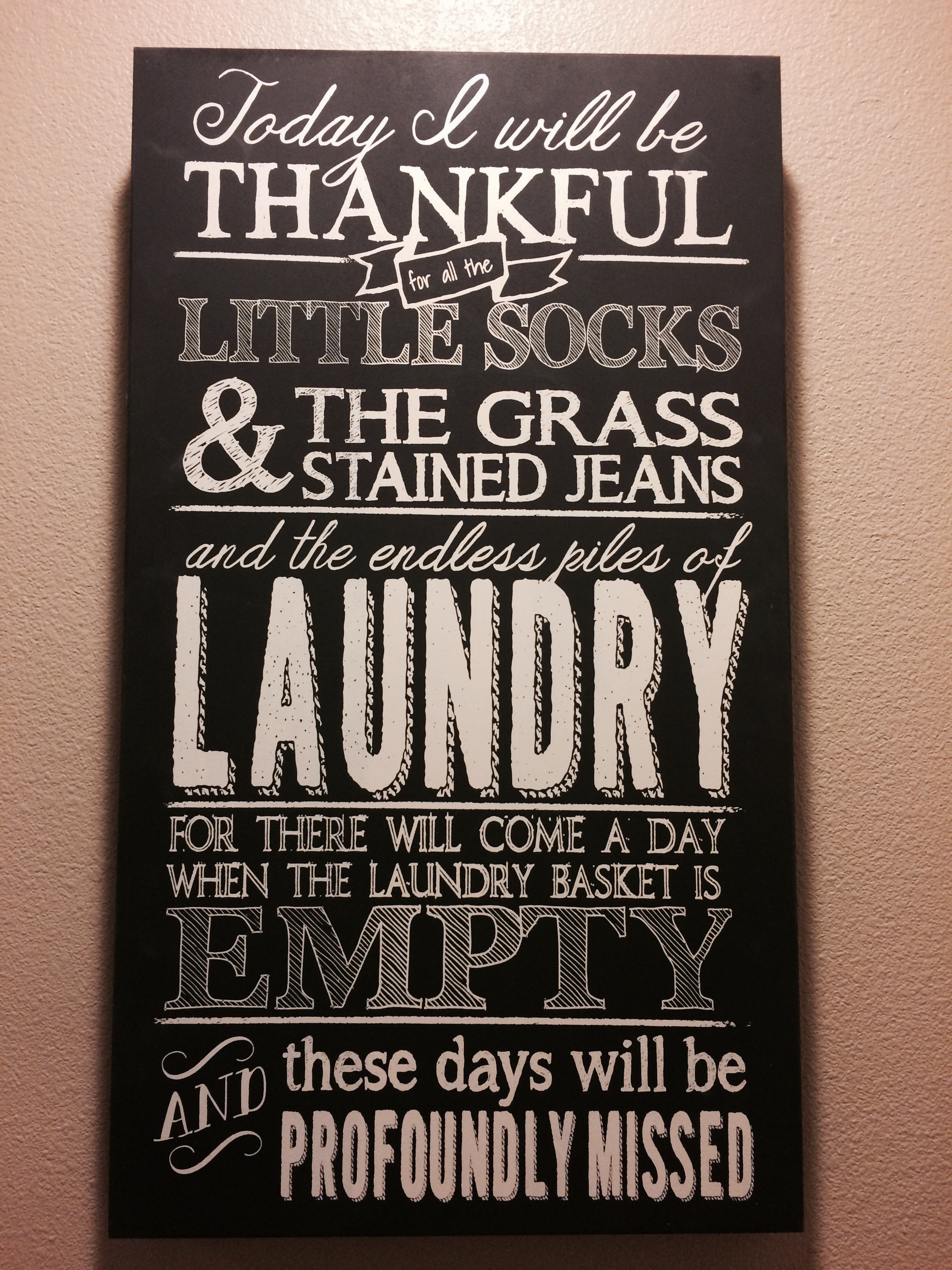 I have this canvas on my laundry room wall to remind me of the joy I SHOULD feel whilst sorting through dirty socks.